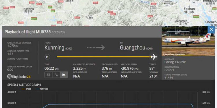 Un Boeing 737 China Eastern Airlines care transporta 133 de pasageri s-a prăbușit în sudul Chinei. Nu există încă informații despre morți.