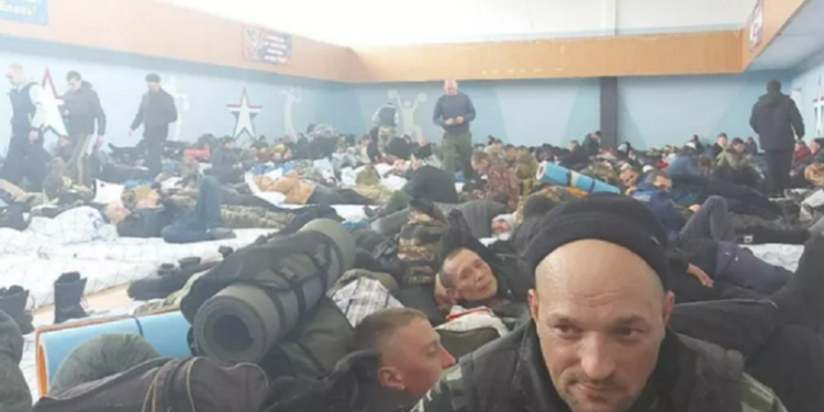 SOTA notează că bărbații mobilizați trăiesc în condiții extrem de aglomerate, aparent într-un fel de sală de sport, ceea ce probabil a contribuit la răspândirea bolii.